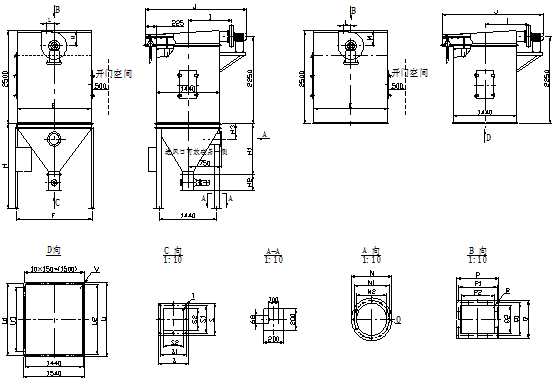 1.箱體與灰斗由定位螺栓鎖緊、整平,現(xiàn)場焊接,焊后不得漏氣(A型);B型直接安裝在揚(yáng)塵點(diǎn)上。