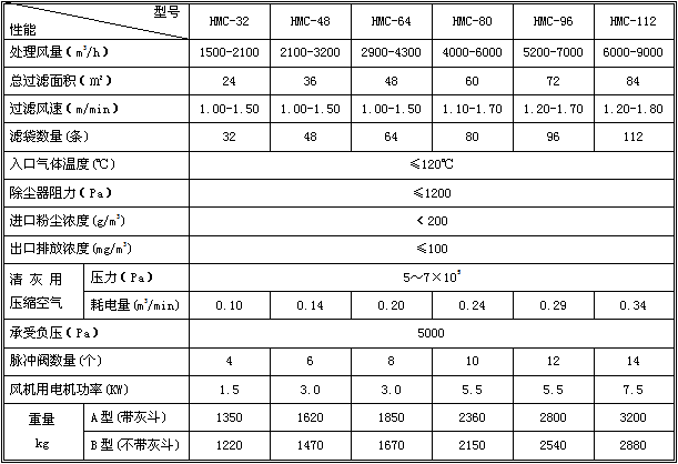 該產(chǎn)品有六種規(guī)格,過濾面積從24—84m2,處理風(fēng)量從1500m3/h—9000m3/h,按用戶實(shí)際需要,也可專門設(shè)計(jì)。